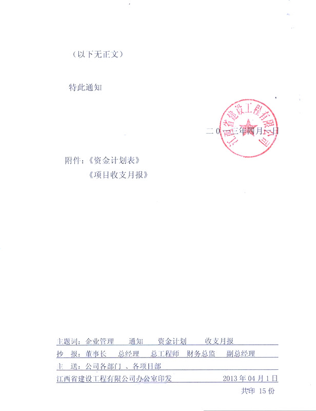 關(guān)于實行項目資金計劃和收支月報制度的通知
